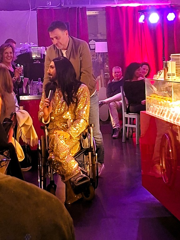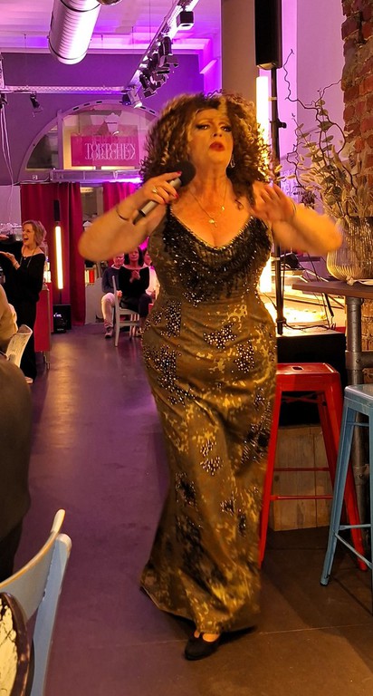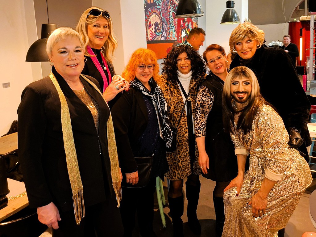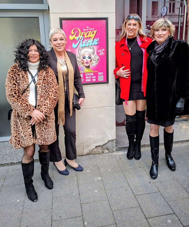 Es trafen sich Jenny, Theresia, Petra und Mercedes zum Stylen im Studio und dann ging es in die Kölner Innenstadt. Noch schnell beim Willi auf der Bank vorbei und den kalten Knaben etwas aufgewärmt;) dann ins Törtchen Törtchen in den gemütlichen Rahmen des kleinen Cafes, zum Drag Dinner und der tolle Drag Show mit Künstlerinnen, die hautnah performten.